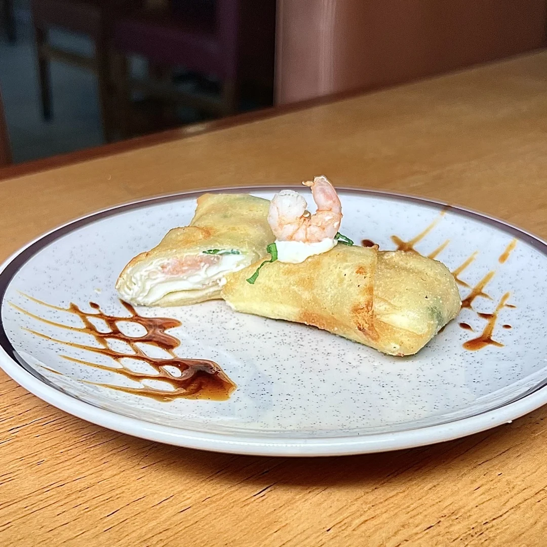 Um sabor que surpreende! Nosso Rolinho de Camarão é feito com uma massa crocante, recheada com camarões selecionados e uma camada cremosa de cream cheese, que deixa tudo ainda mais saboroso. Lembra o tradicional rolinho primavera, mas com um toque especial que combina a suculência do camarão com a cremosidade perfeita. Uma unidade cheia de sabor para você aproveitar.