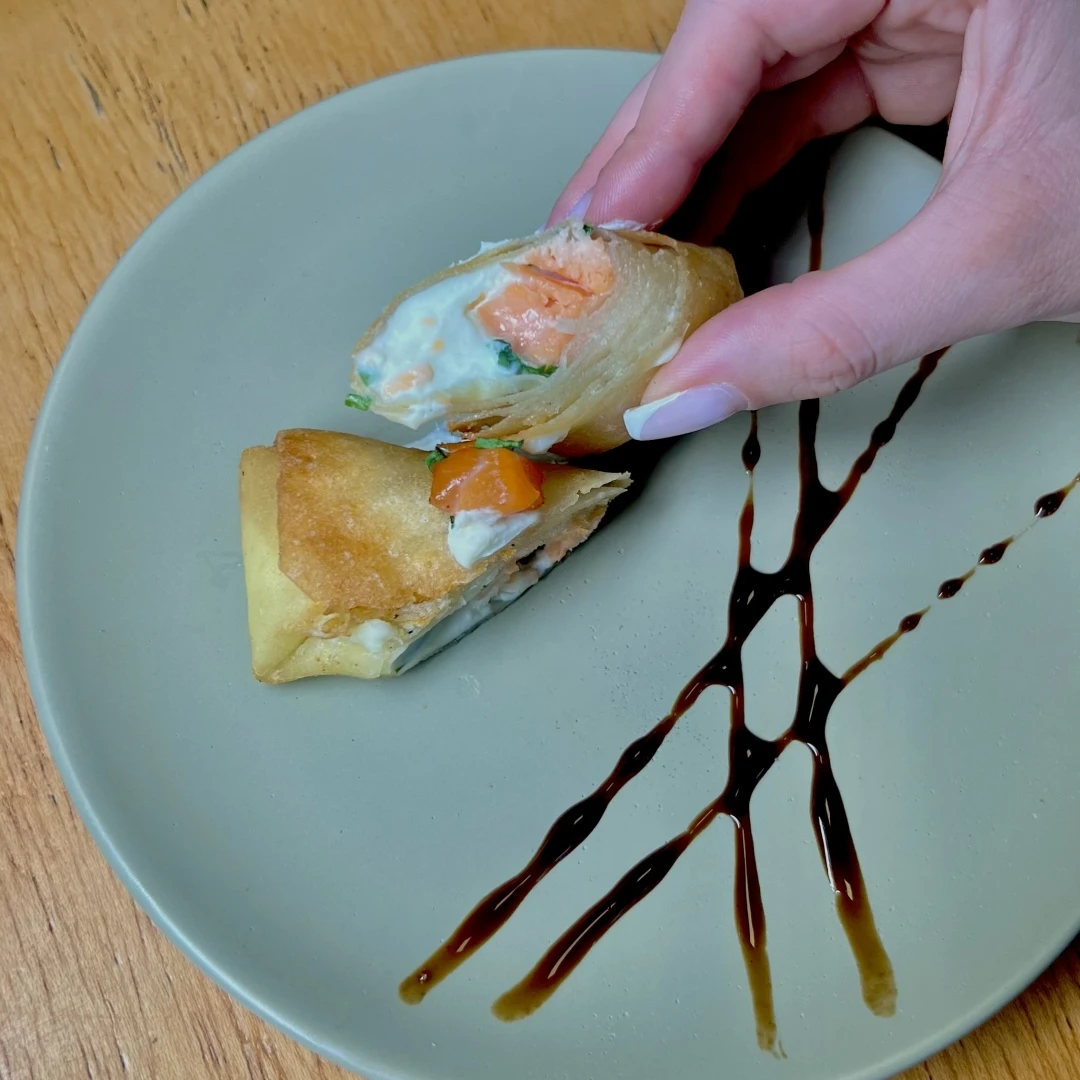 Uma novidade irresistível no nosso cardápio! Nosso Rolinho de Salmão é preparado com massa crocante, delicadamente recheada com lascas de salmão fresco, temperos especiais e um toque de cremosidade. Leve, saboroso e com aquela textura que lembra o clássico rolinho primavera, só que com o sabor sofisticado do salmão. Perfeito para quem ama combinações marcantes e quer experimentar algo diferente.