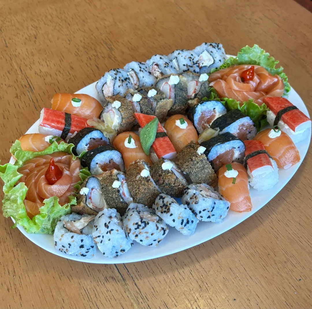 Uma experiência exclusiva para os amantes de sushi! Monte seu próprio combinado com 45 peças selecionadas entre nossas opções: cariocas, uramakis, makimonos, sashimis e sushis especiais! OBS.: As peças só saem de 5 em 5 unidade de cada sushi. Então não será possível fazer apenas 1,2,3 ou 4 unidades de um carioca, mexicano, uramaki, etc....