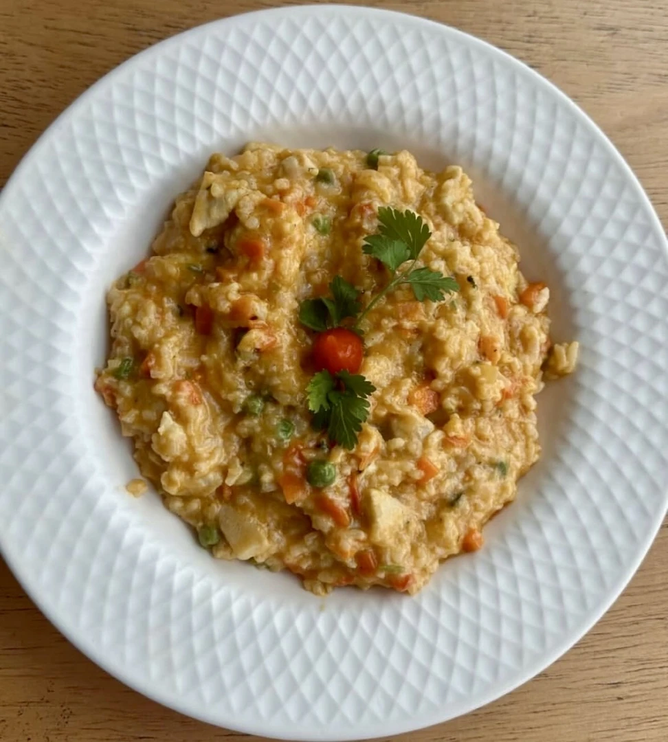 Cremoso e cheio de sabor! Preparado com arroz arbóreo cozido lentamente no caldo especial da casa, nosso risoto é finalizado com frango em cubos bem temperado, garantindo textura macia e sabor marcante em cada garfada. Uma opção reconfortante e deliciosa para qualquer momento.