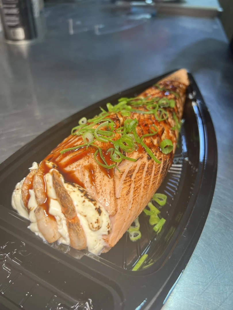 Enrolado em cone de salmão com recheio de patê de camarão ou salmão, molho de maracujá VALORES COM A EMBALAGEM INCLUSA!!
