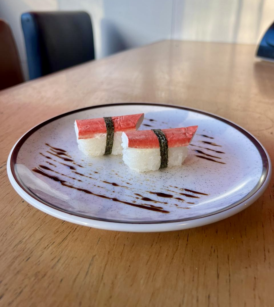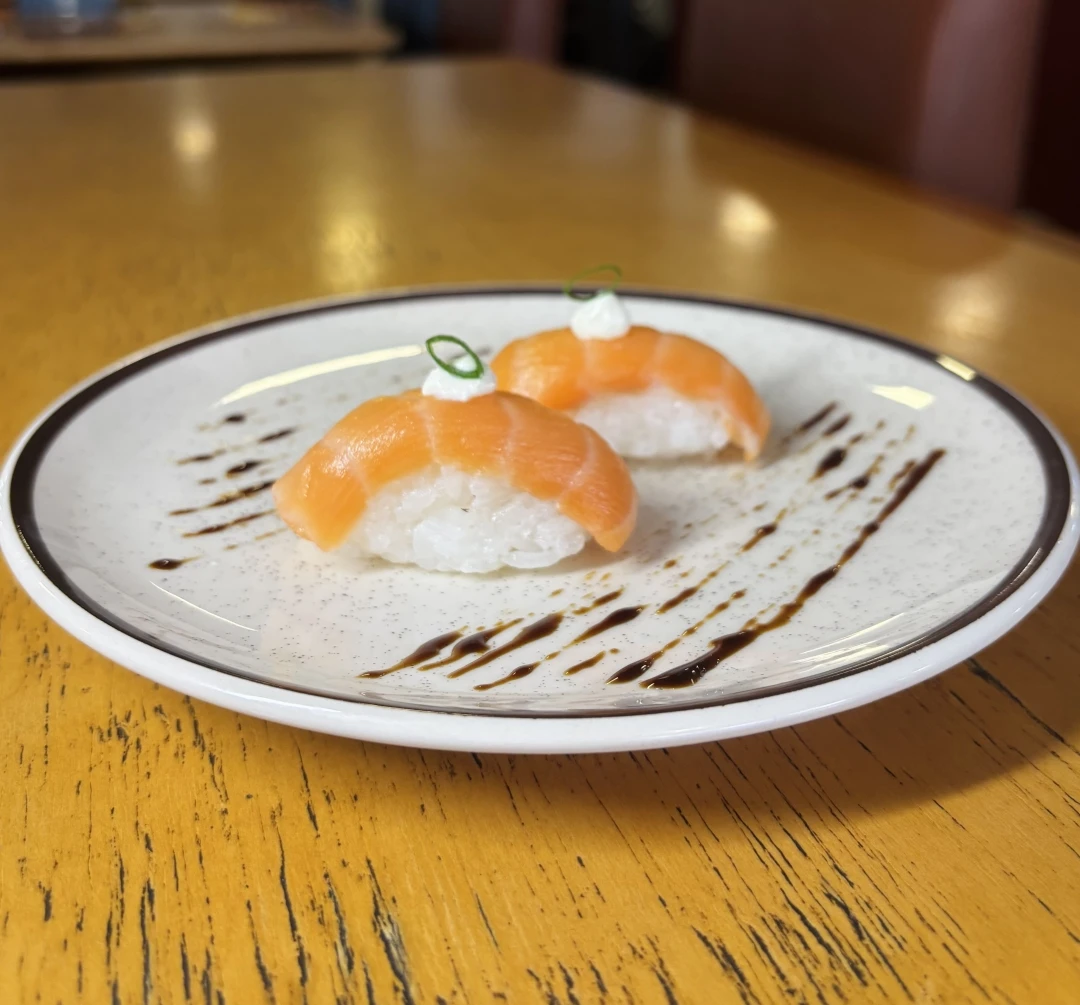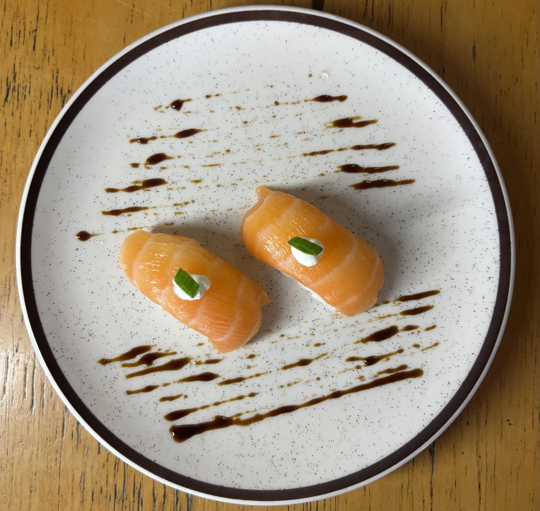 Enrolado por salmão por fora, arroz e coberto com patê. VALORES COM A EMBALAGEM INCLUSA!!