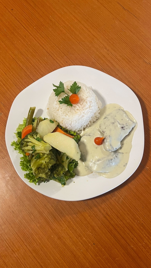 Filé de frango grelhado, macio e bem temperado, coberto com um creme irresistível de quatro queijos. Um prato cremoso, saboroso e perfeito para quem ama sabores marcantes. Você ainda escolhe dois acompanhamentos para montar o prato do seu jeito. VALORES COM A EMBALAGEM INCLUSA!!
